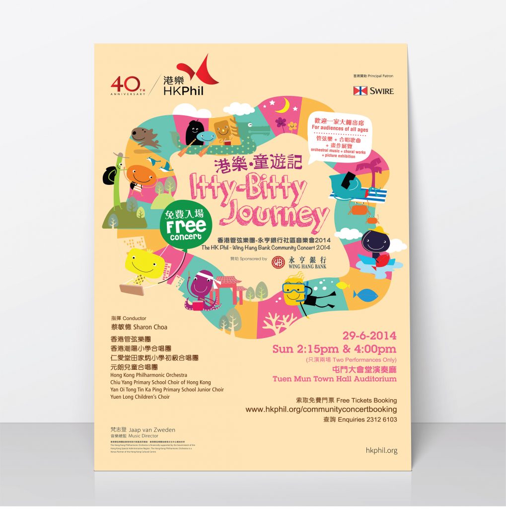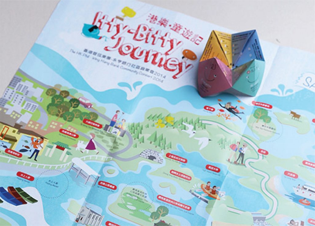The concert Itty Bitty Journey is a choral concert that were played by a few lcoal choirs, one of the highlight was Song of the Sai Kung Bays by Yip Chee-Kwong. A traditional paper game ‘East South West North’ were created with question about the concerts, a interactive map of Sai Kung with major travel spot were created to impress children and encourage them to keep.