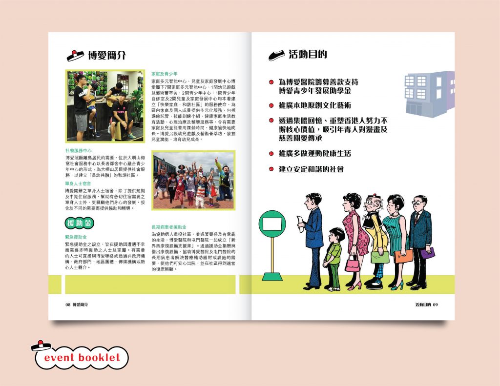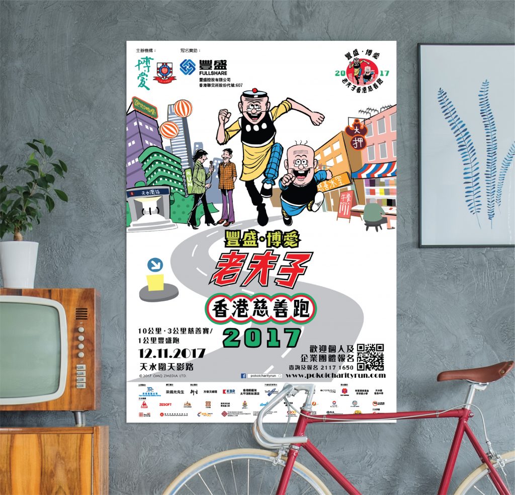 It is a new combination of a running event with a signature Hong Kong famous character Old Mster Q. Thedo was invited to be a integration between the comic, the event and the charity running theme.
